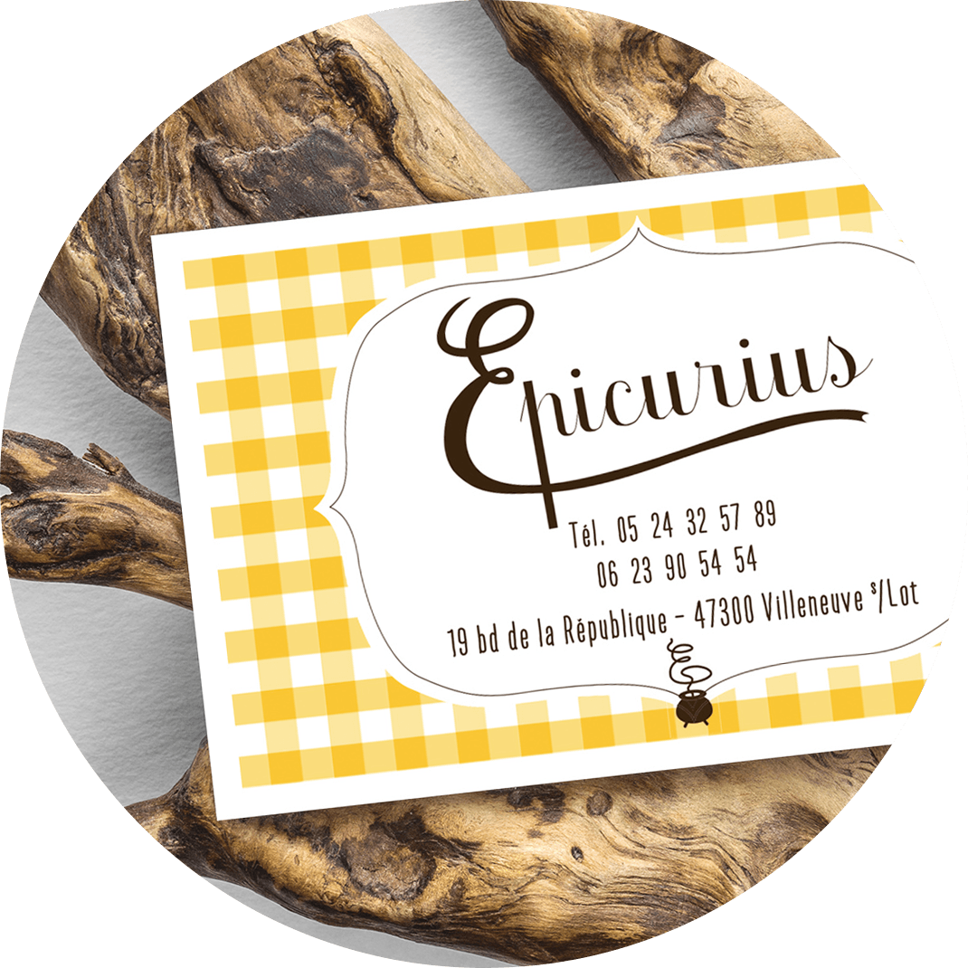 Carte de visitedu restaurant Épicurius.